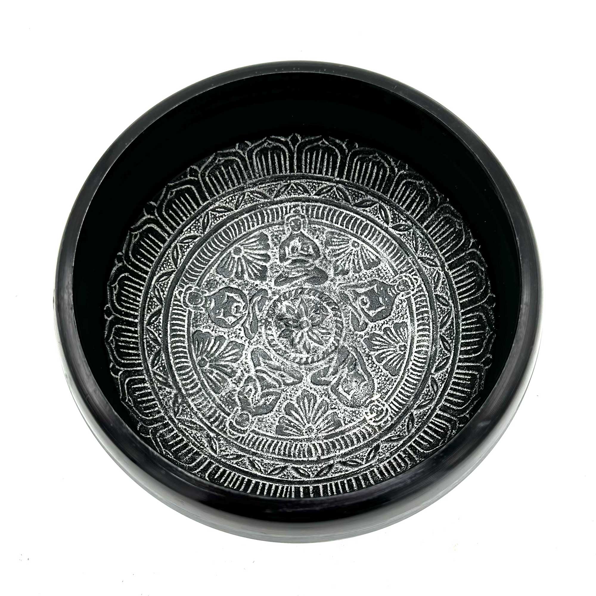 This 16cm Earth Powder Singing Bowl showcases the sacred Om symbol surrounded by the Five Buddha design. Handcrafted with precision, it is made from earth powder and designed for both aesthetic appeal and harmonic resonance.Tibetan singing bowls have been used for centuries to create soothing sounds that promote relaxation and meditation. The resonant tones from this singing bowl can help reduce stress and improve concentration during meditation. The Om symbol represents the essence of the universe and is believed to bring inner peace and balance.