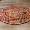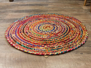 From India these hand made rugs are beautiful ,soft-to-touch and hard-wearing. Made from sustainable jute and recycled cotton sari material or recycled denim off-cuts.Complete with AW-Artisan hand-tag to show this product is fairly traded.Round rugs are so fashionable now, so join up the circle and order today.